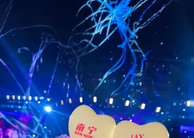 甚至有一位来自广西河池的歌迷现场即兴飙了一段山歌,直接把周杰伦的创作欲点燃了。他当场将《双截棍》和“嘿撩撩螺”的旋律无缝融合,直呼“山歌给了我灵感”,上演了华语乐坛最奇妙的“跨次元”互动。
